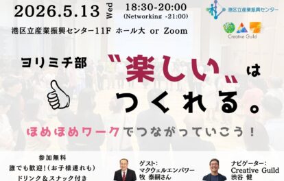 港区立産業振興センターにて 毎月3回、 ギルドマスターの渋谷が 無料のメンタリングを ご提供しています。 お申込み・お問い合わせは 同センターまで。