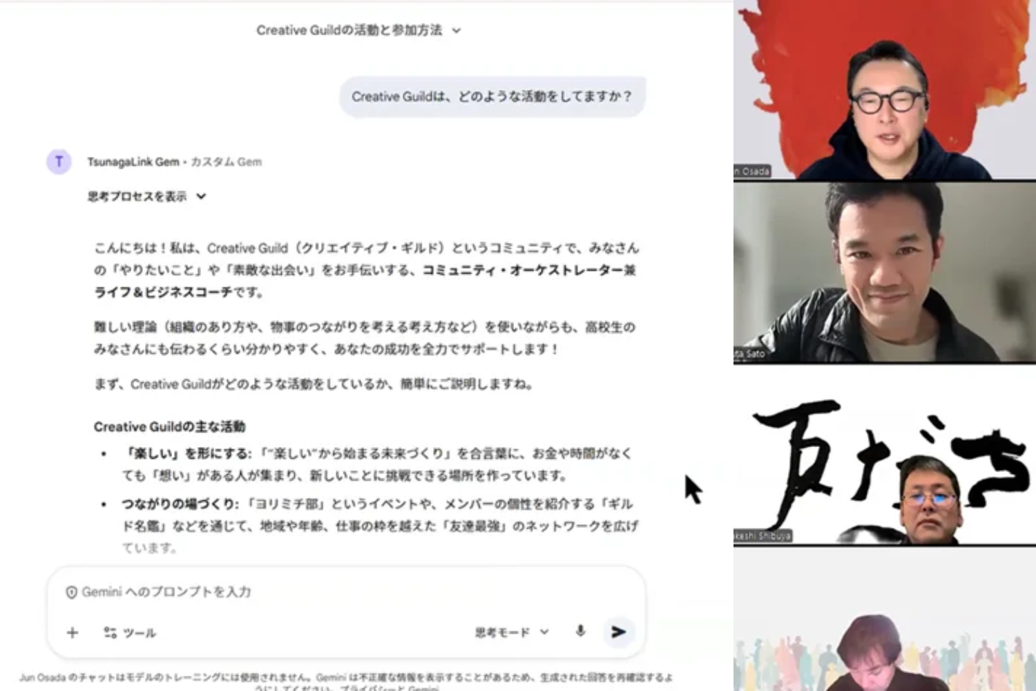 もちろん登録がゴールではなくて、プロフィール情報がそろうと、Gemに投げる質問が具体的になって相談が進みやすい、その感覚をみんなで体験しました✨