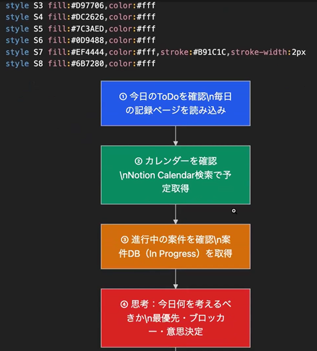 To DoやGoogleカレンダー、案件情報、目標設定など、複数のデータを組み合わせながら、その日の行動や優先順位を整理していく活用例を紹介。AIにただ質問するのではなく、判断材料となる情報を設計して渡すことで、AIが仕事を支える仕組みとして機能していくことを、具体的にイメージできる内容でした💡