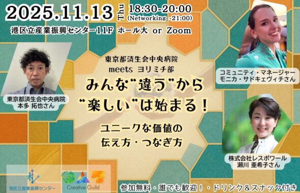 港区を起点にいろんなところで働く・暮らす、楽しい時間を創りたい人たちによるコミュニティCreative Guild。今回、新たに「 楽しい から始めよう」を合言葉に新しいロゴを、アート作品をもとにデザインするためのワークショップを開催します。未来に対するそれぞれの”想い”を共有して、この Creative Guild の場のシンボルとなるロゴを一緒に考えていきましょう!