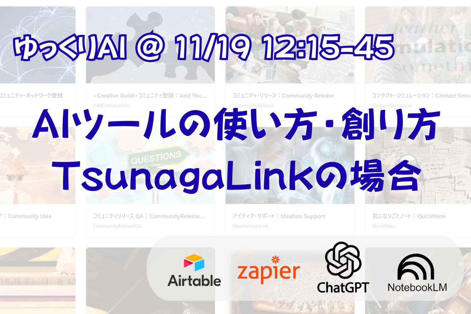 【11/19(水)12:15~】ゆっくりAI(第15回)「AIツールの使い方・創り方 TsunagaLinkの場合」