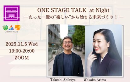 【11/5(水)19:00~】ONE STAGE evening TALK — たった一畳の“楽しい”から始まる未来づくり! —